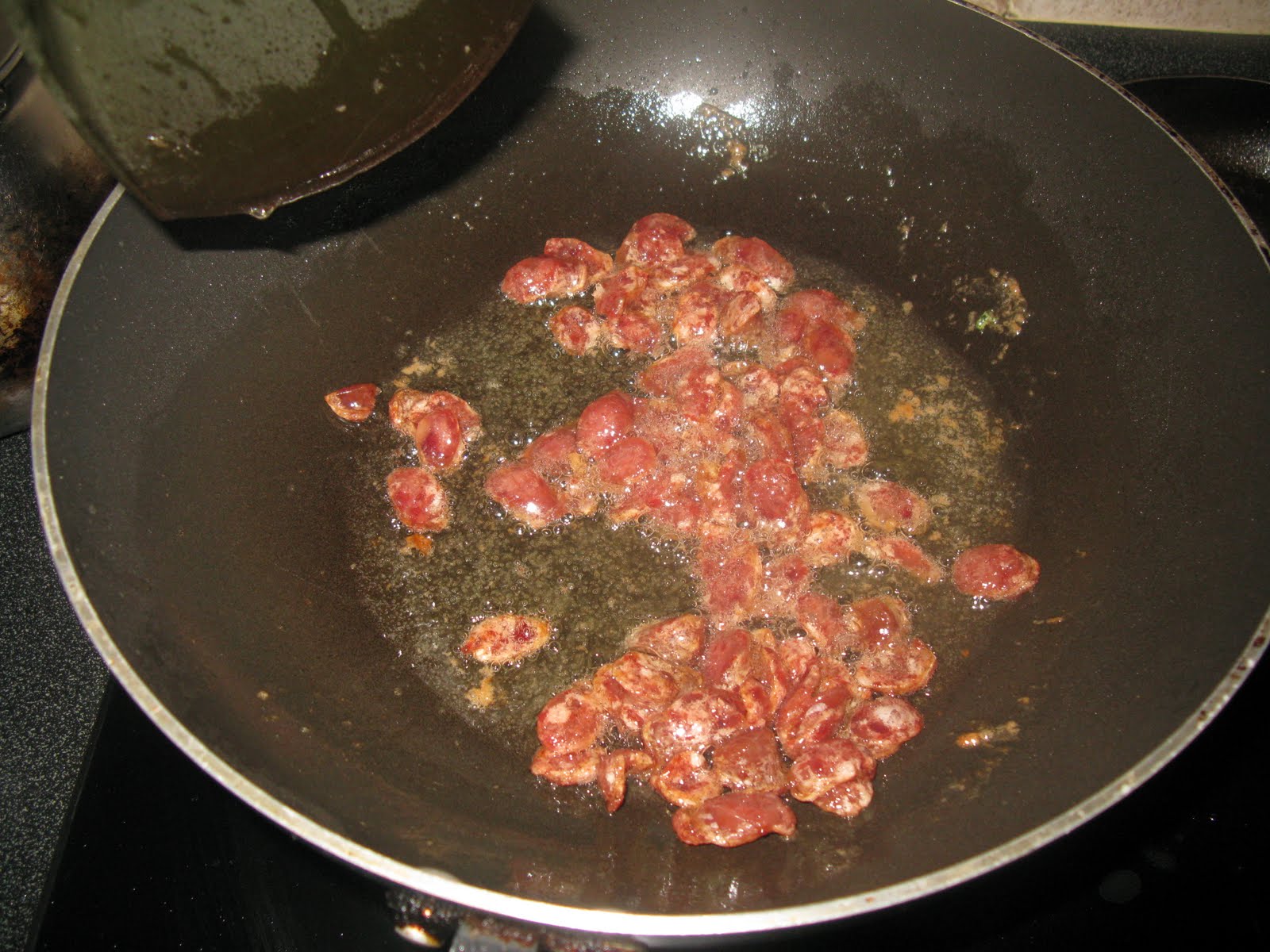 ၀က္အူေခ်ာင္း၅ေခ်ာင္းေလာက္ကို ခပ္ပါးပါး၊ အေစာင္းေလးေတြ လွီးထားပါ။ ပထမဆံုး non sticker ဒယ္အိုးခပ္ၾကီးၾကီးထဲ ၀က္အူေခ်ာင္းကို ေရၿမဳတ္ေအာင္ထည္႔ၿပီး အရင္ၿပဳတ္ပါတယ္။ ေရခန္းေတာ႔ ဆီ စားပဲြဇြန္း ၁၀ဇြန္းခန္႔ထည္႔ၿပီး ေၾကာ္ပါတယ္။
